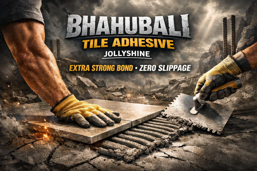 BHAHUBALI Tile Adhesive β JOLLYSHINE is engineered for superior strength and long-term performance. Its advanced formulation offers extra-strong bonding, excellent workability, and resistance to slippage. Suitable for ceramic, vitrified, and mosaic tiles, it ensures professional-quality fixing for residential and commercial projects.